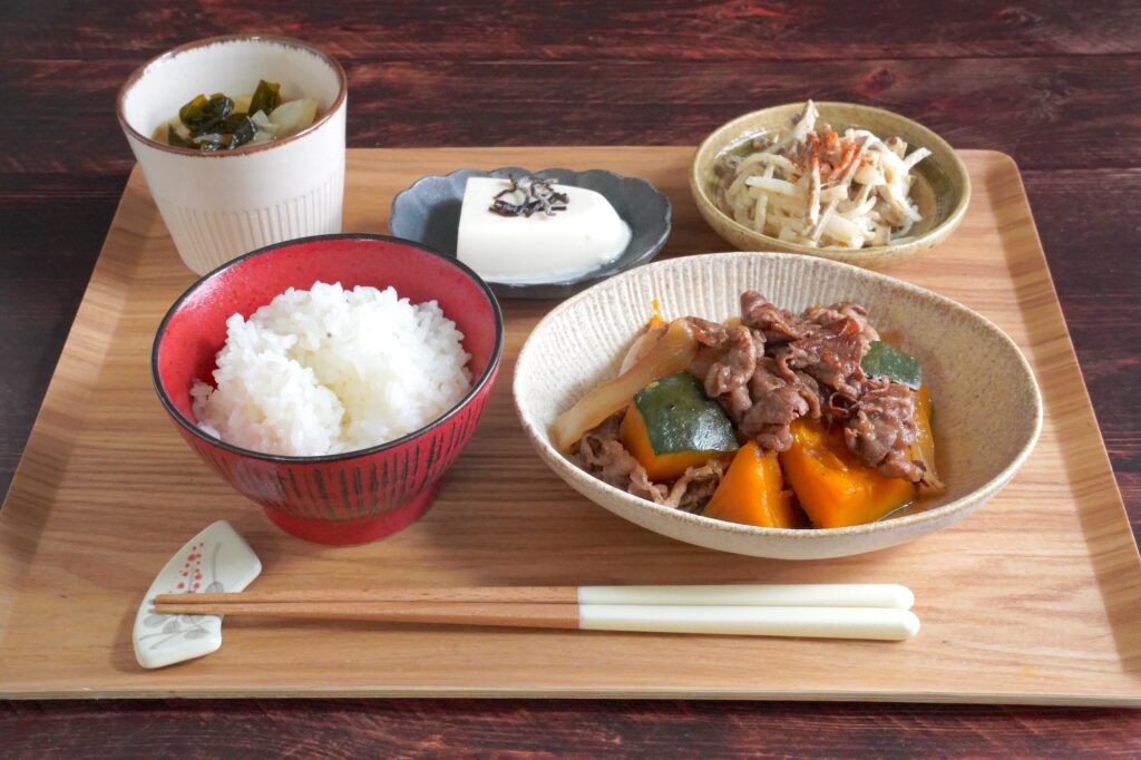 秋のほっこりおかず!かぼちゃと牛肉の煮物献立(#64_1日目)