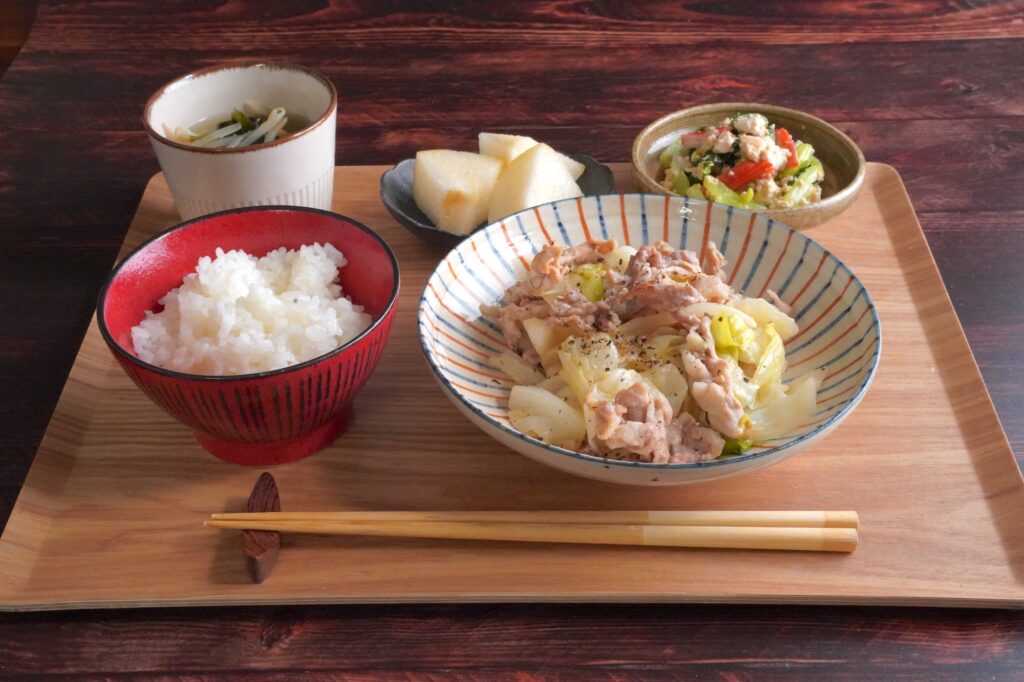 和食でお腹満足!豚とキャベツの塩麹炒め献立(#65_3日目)