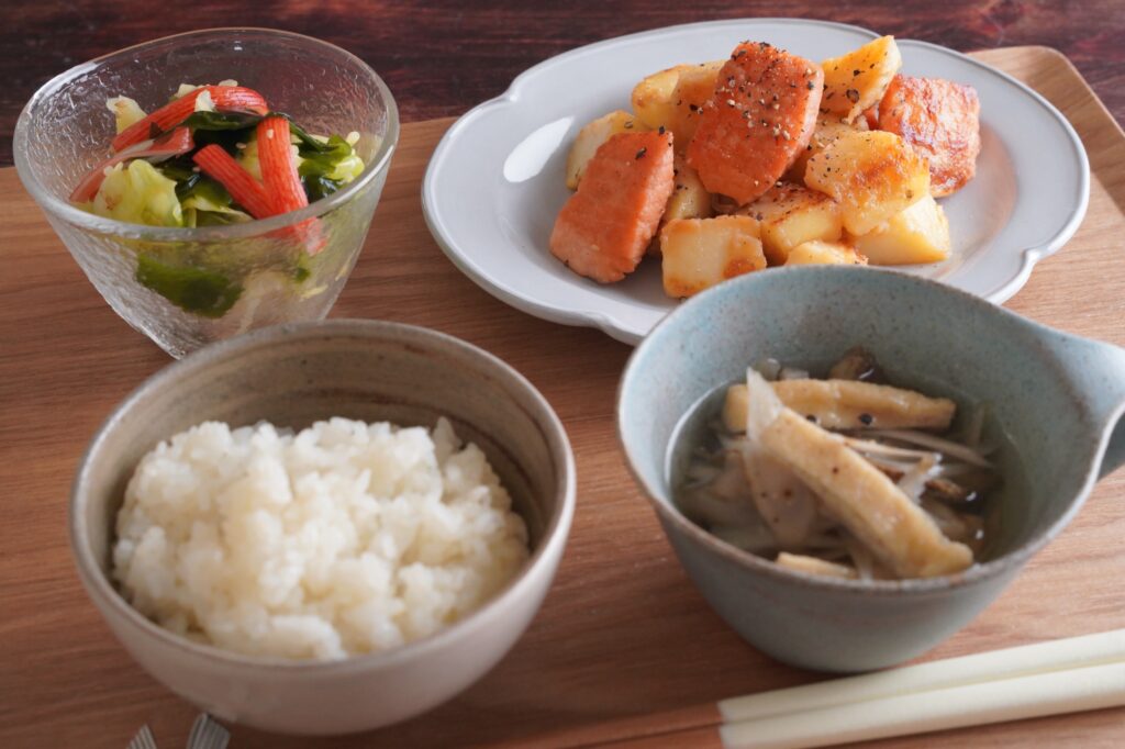 新じゃがと鮭のバターポン酢炒め|春野菜たっぷりのさっぱり献立(#81 2日目)