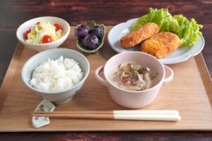副菜も汁物も野菜たっぷりでバランスの良い洋風メニューの組み合わせですので、是非参考にしてくださいね。