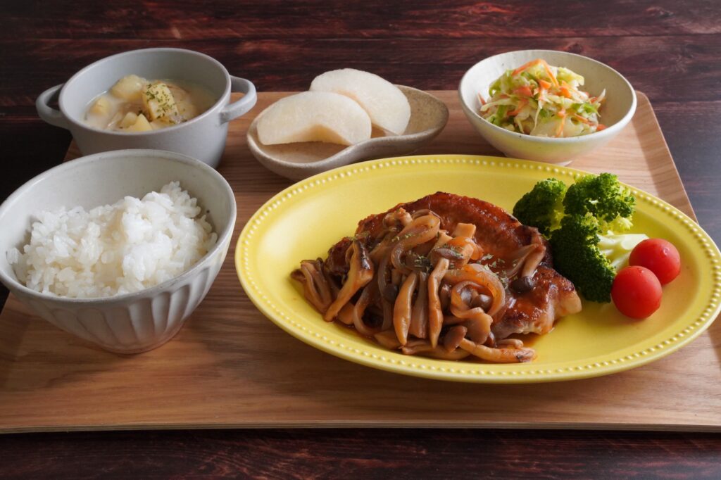 秋の洋食!ポークソテーきのこケチャップ・ソース献立(#62_2日目)