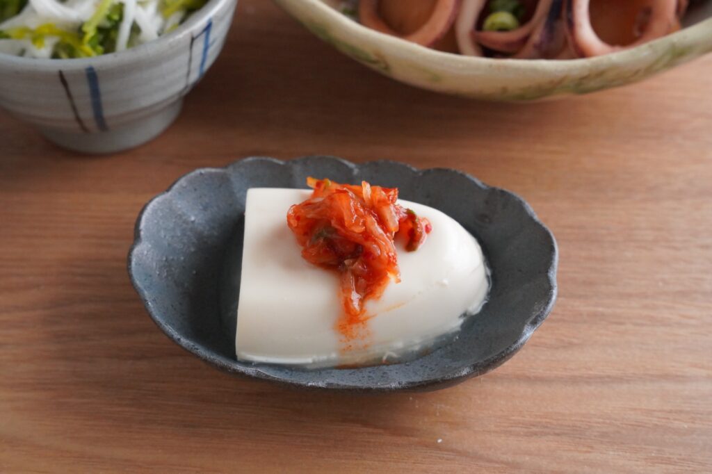 冷奴にキムチをトッピングしたごはんが進む一皿を追加しました。