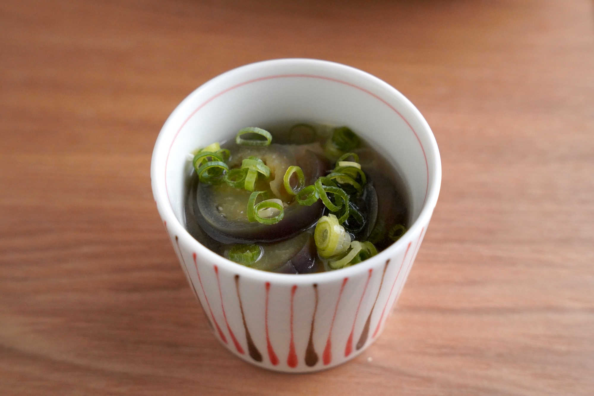 秋なすに薄揚げを合わせた定番の味噌汁。