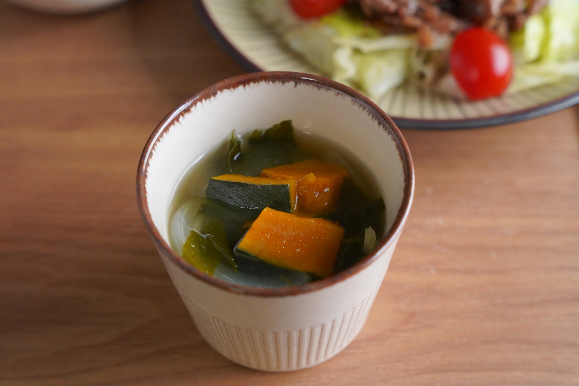 ホクホク甘みのあるかぼちゃと海藻(わかめ)は味噌汁とも相性が良く、食感や味のアクセントでサラダ献立が飽きずに食べられました。