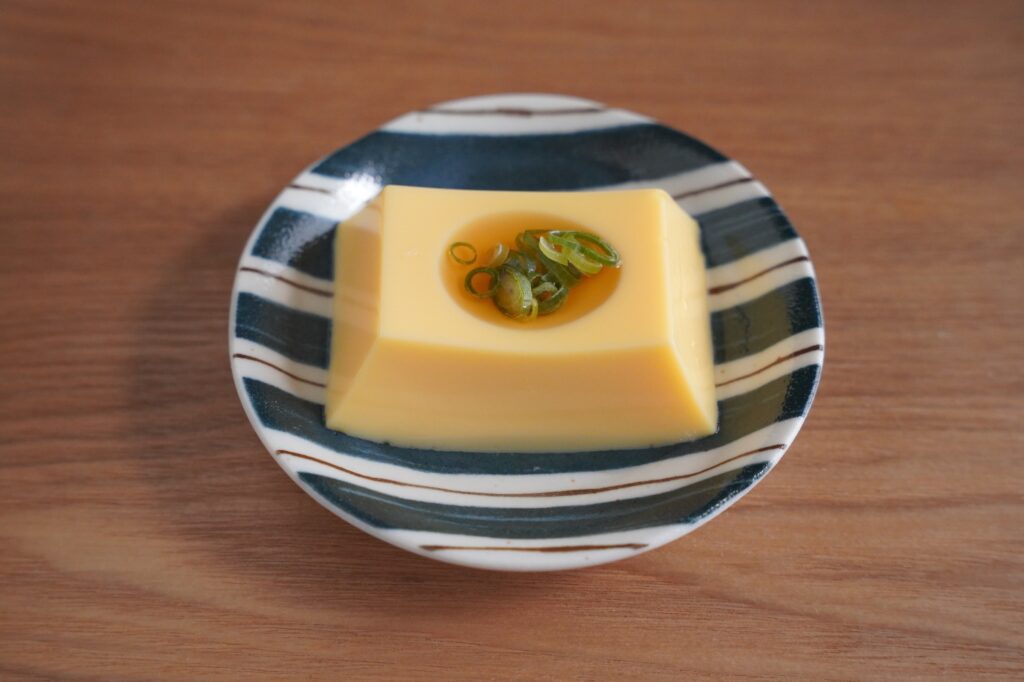もう一品の小鉢は、開けるだけで食べられる卵豆腐。