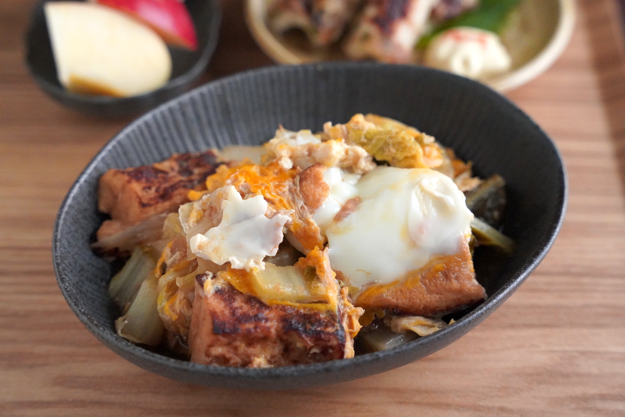 白菜の甘みと厚揚げのコクをふんわり卵でまとめた優しい味わいの一品。