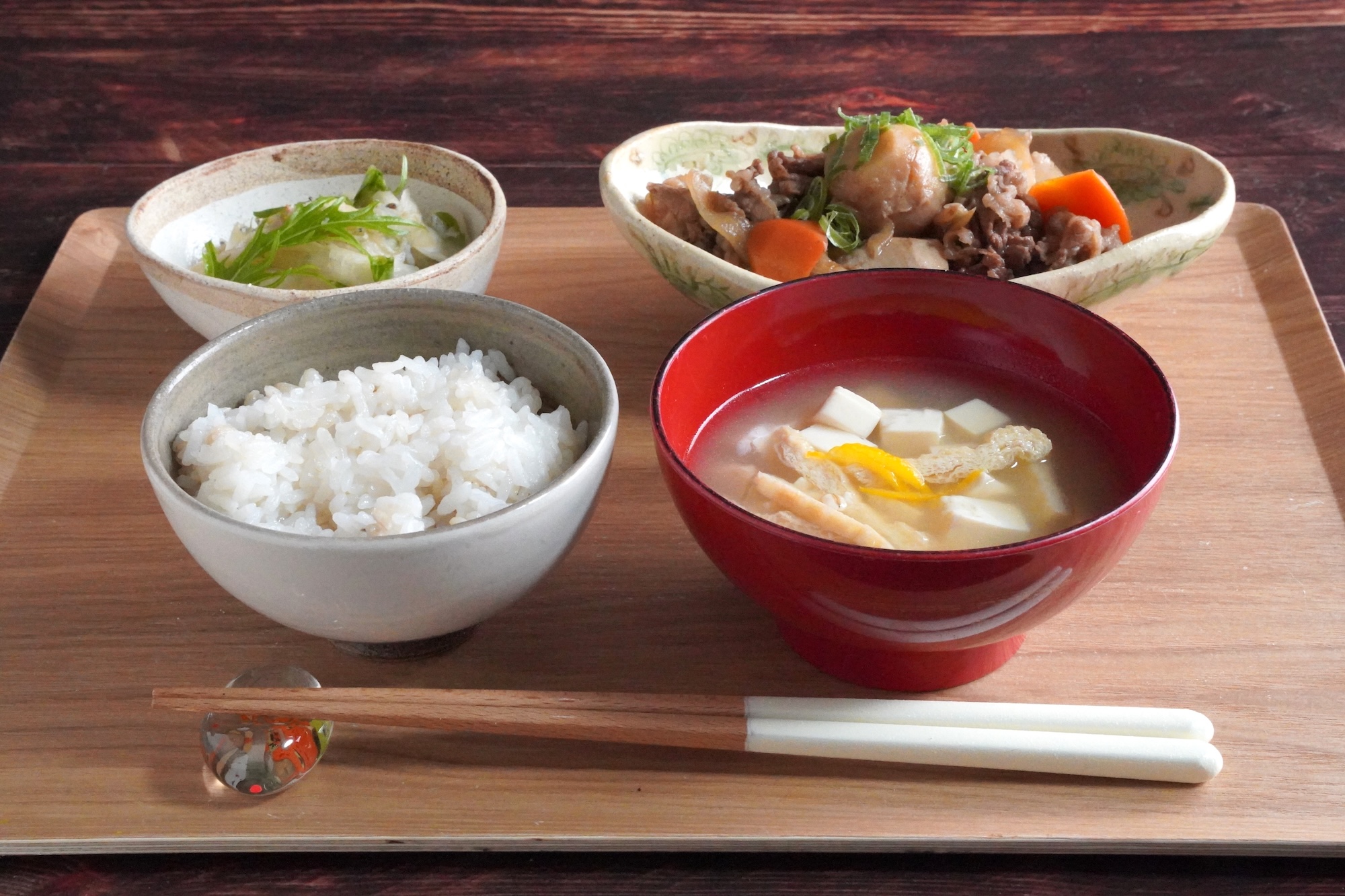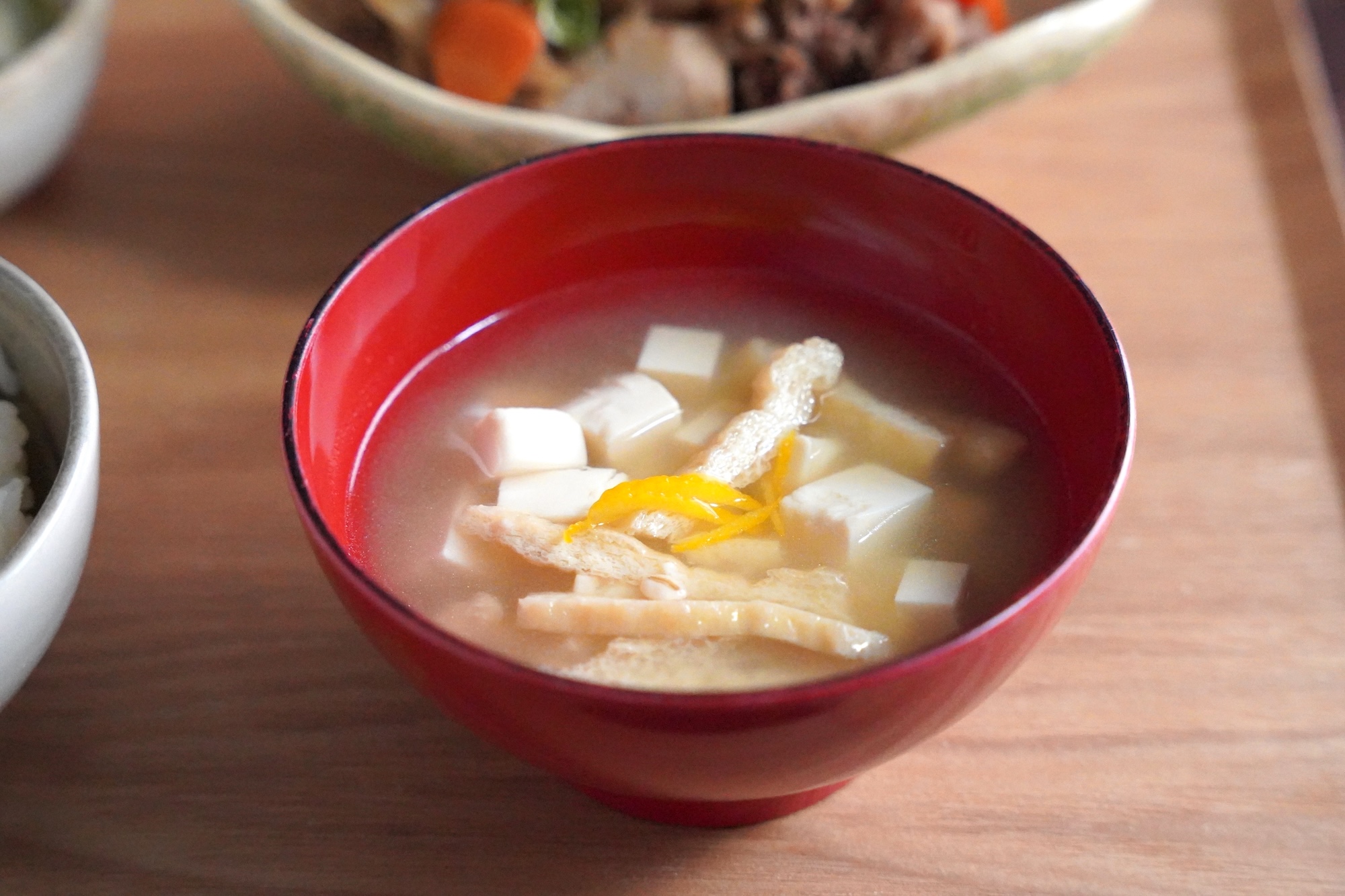 汁物は薄揚げと豆腐のホッとする定番具材の味噌汁。