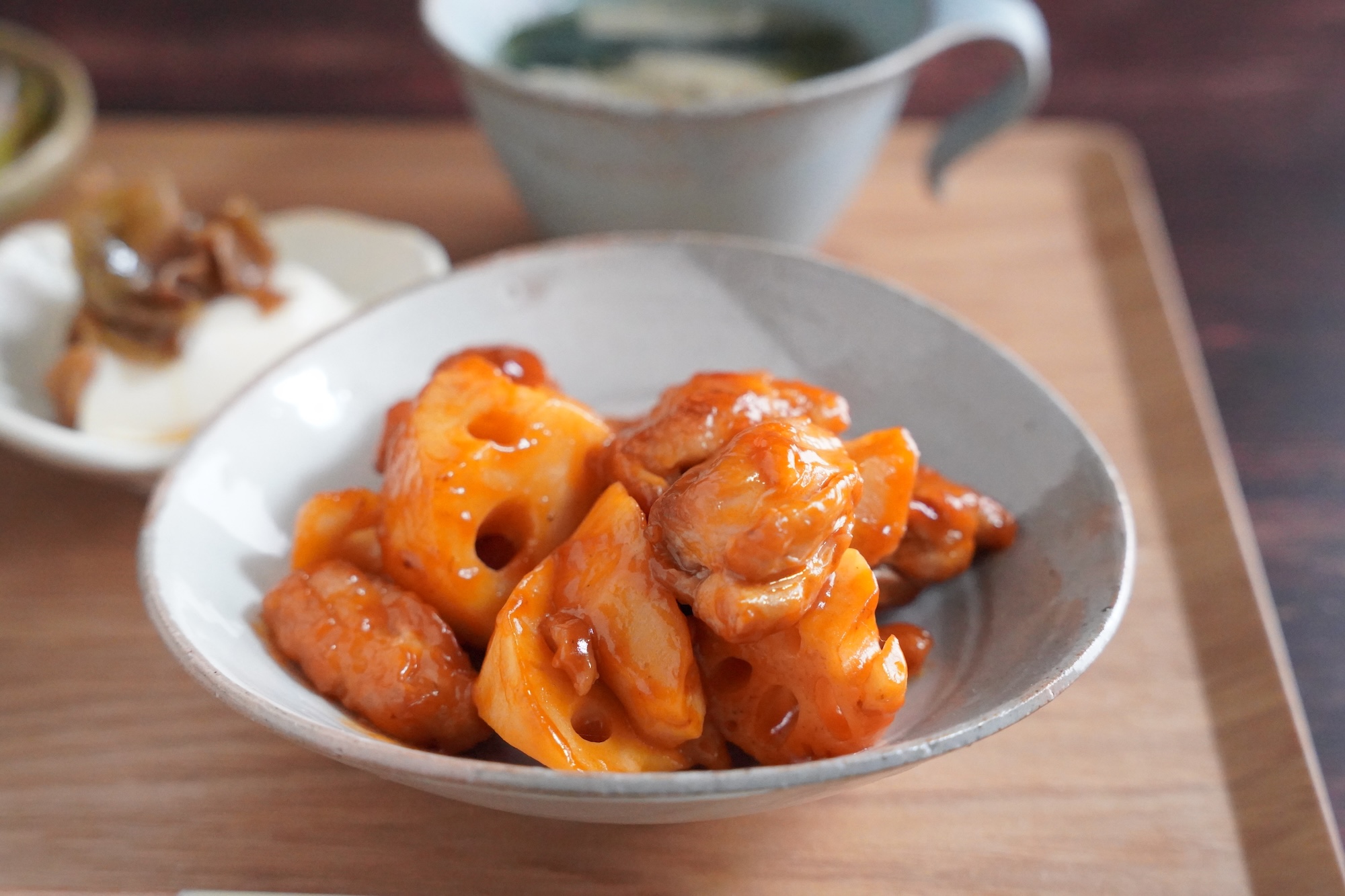 れんこんのシャキシャキ感を楽しめる、食べ応え抜群の甘酢炒めです。