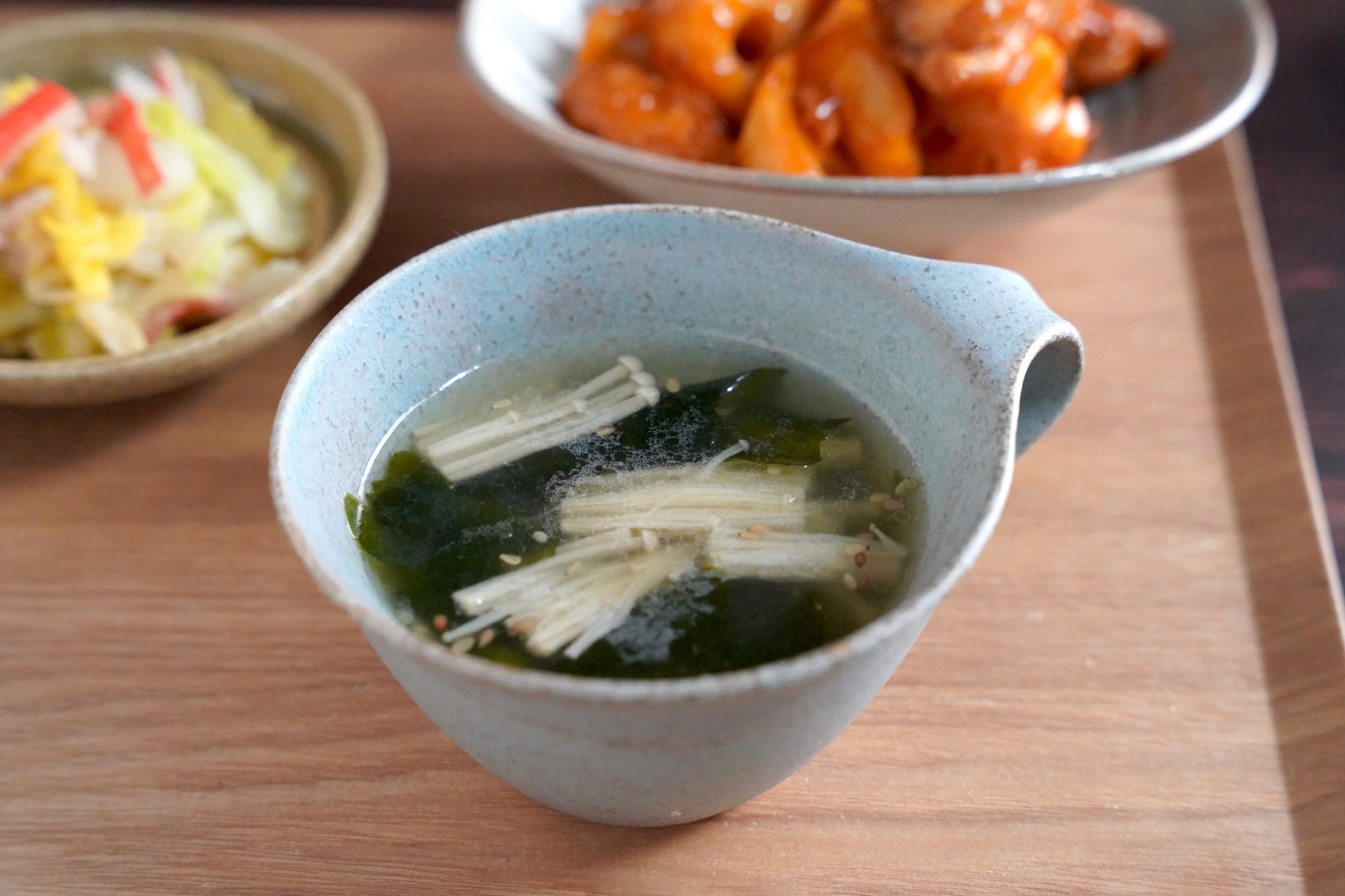 寒い季節には、体がほっと温まるとろみスープがぴったり。今回はわかめとえのきですが、もちろん他の食材でも👍️