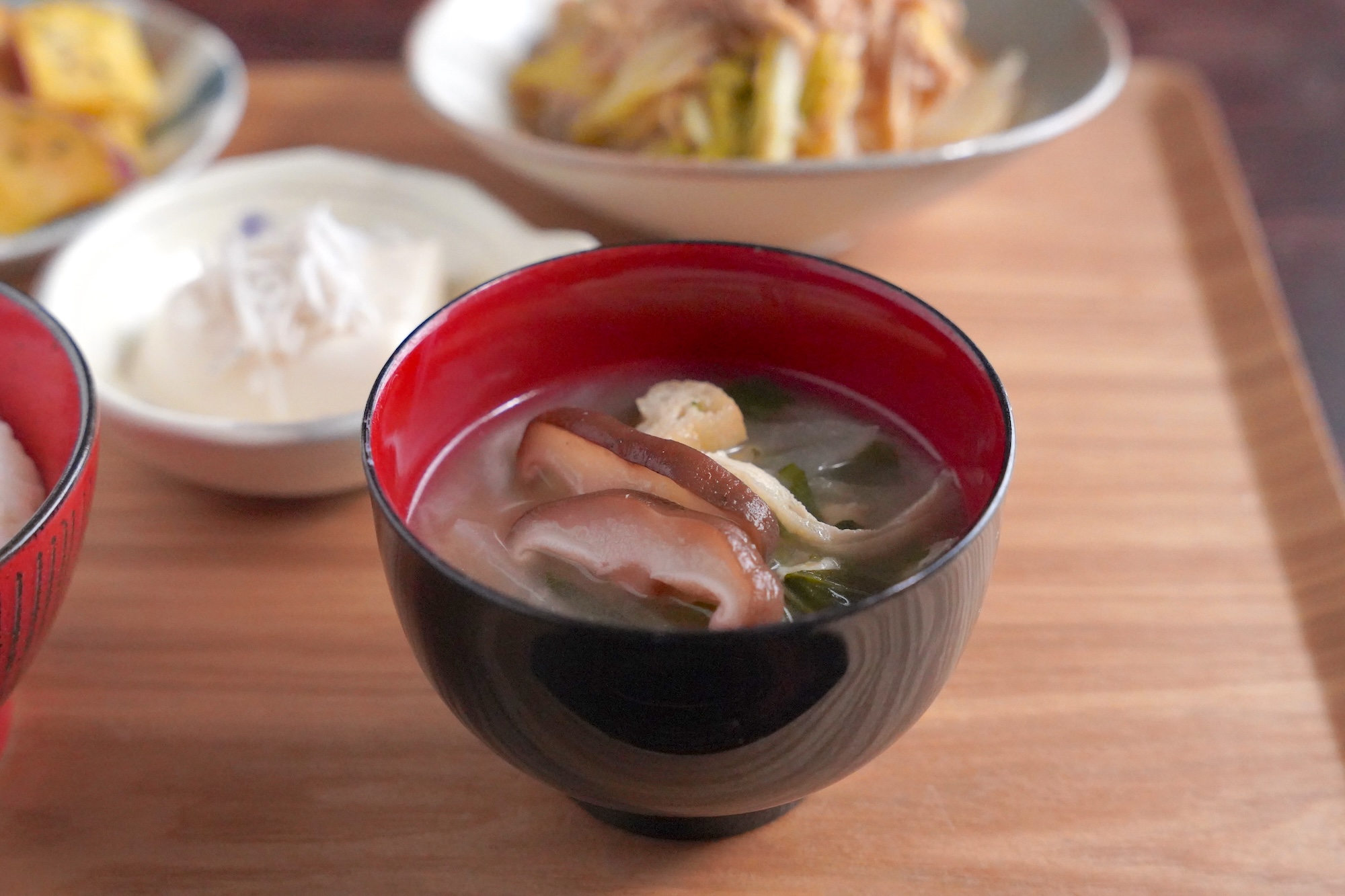 あとは冷凍ストックのきのこや薄揚げをいれればボリュームのある味噌汁に仕上がります。