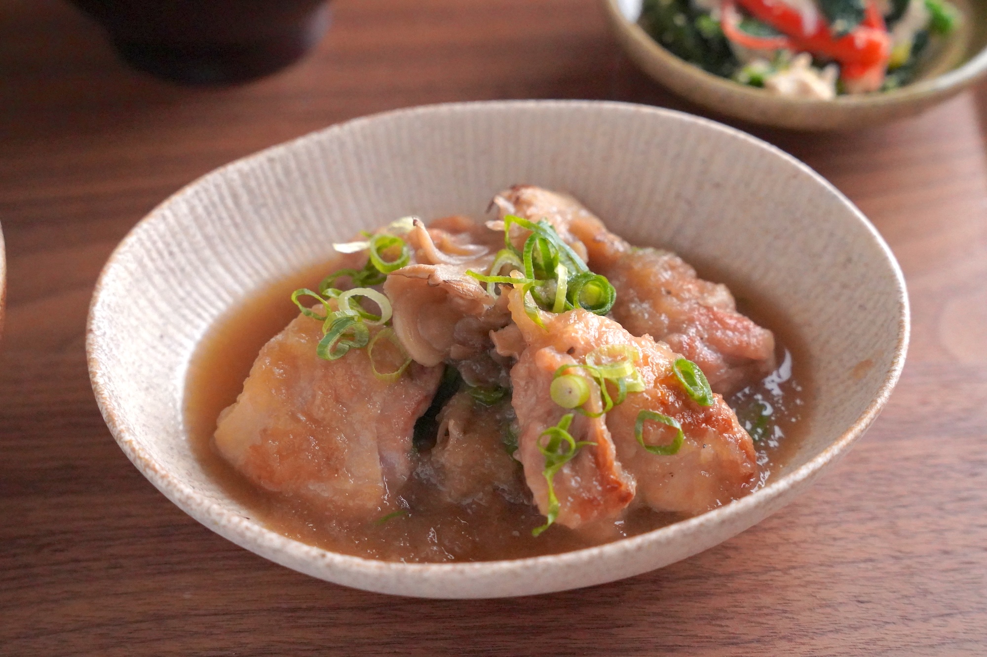 鶏肉と舞茸を、大根おろしでさっぱりと煮込んだ主菜です。