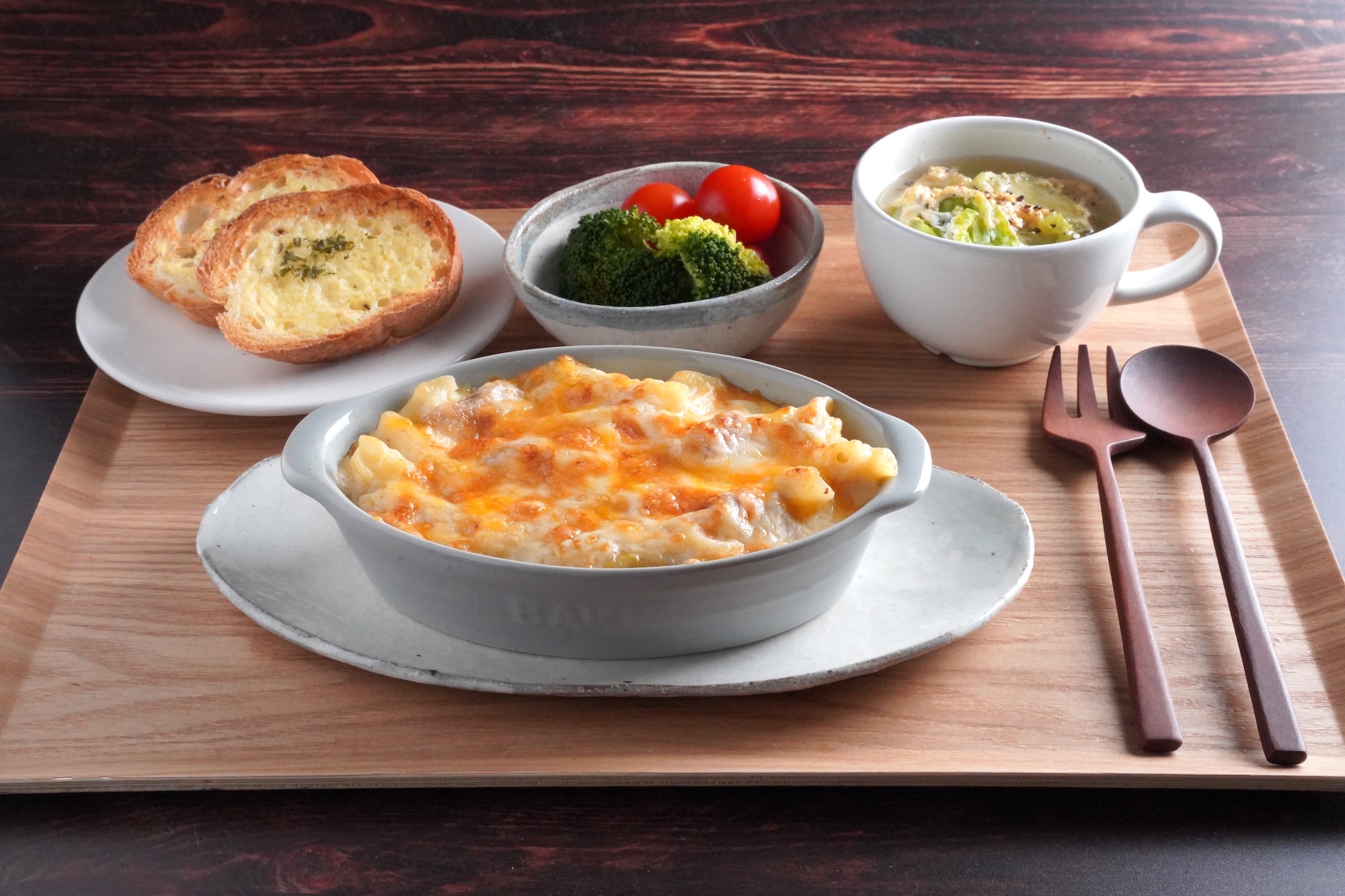 チーズたっぷりのマカロニグラタンに温かいスープを組み合わせた、寒い日にぴったりの洋風献立はいかがでしたか?