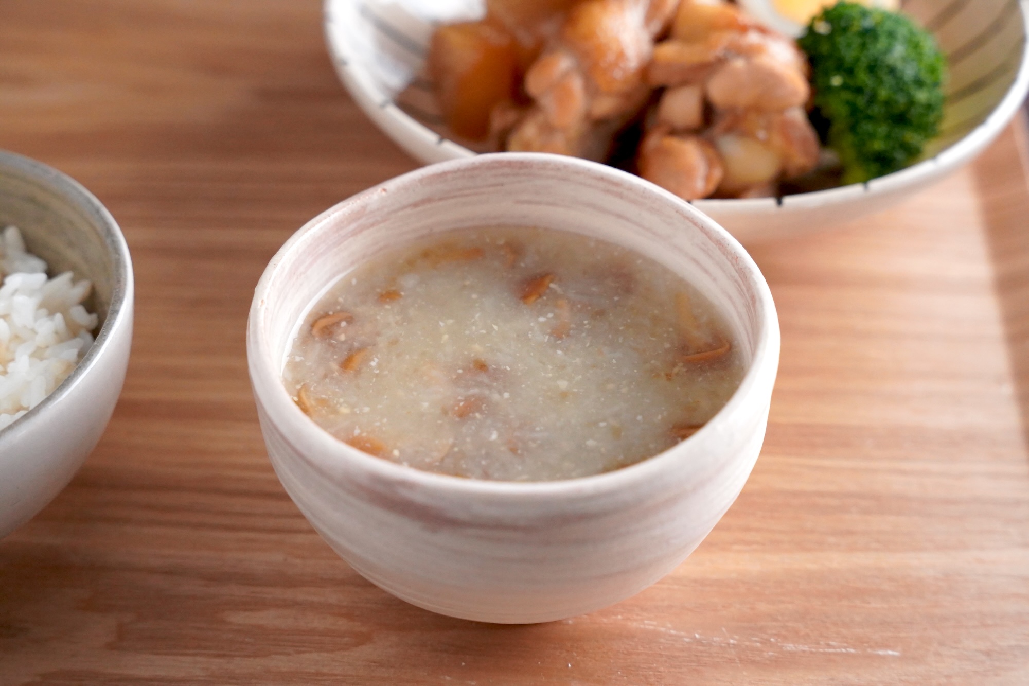 汁物 長芋のなめこ汁|とろみで冷めにくい