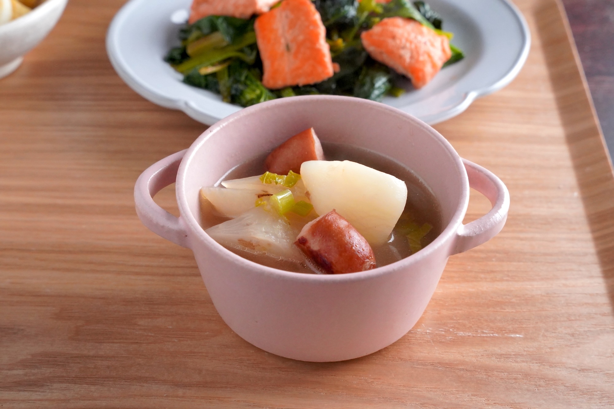 汁物 かぶとソーセージのスープ|冬野菜で食べ応えアップ
