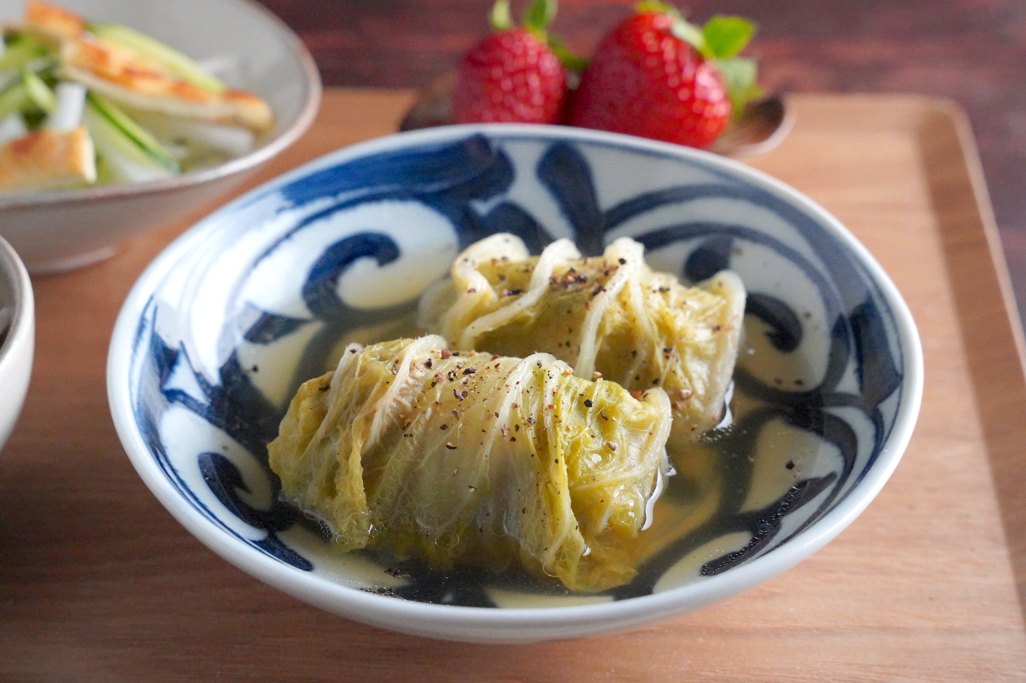 ロール白菜は、いつものロールキャベツを白菜で作るアレンジメニュー。