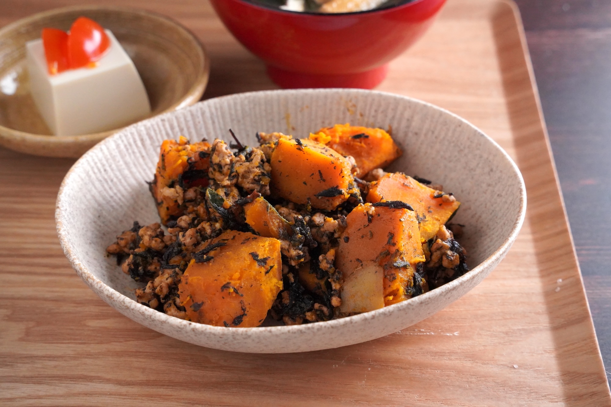 主菜 かぼちゃとひじきのそぼろ煮|冷凍してもホクホク!定番レシピ