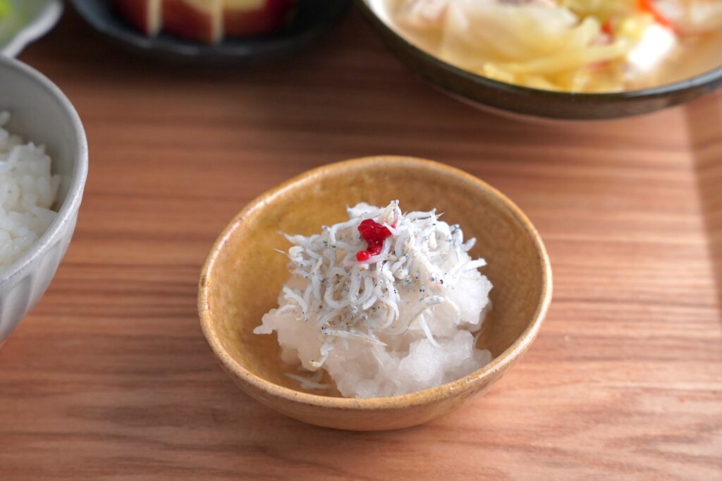 ふんわりしたしらすの塩気と、大根おろしのさっぱり感がよく合い、無理なく食べられます。