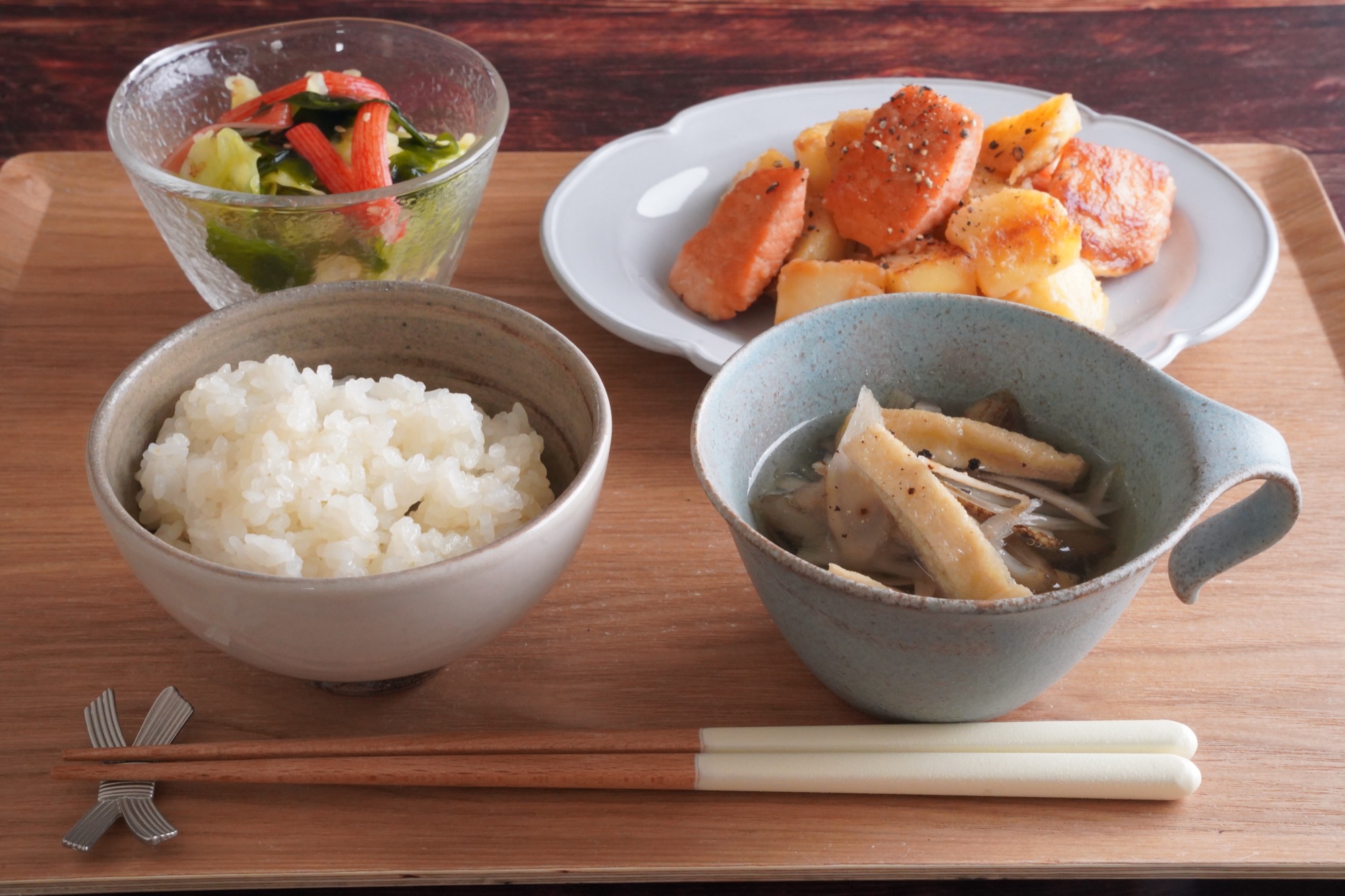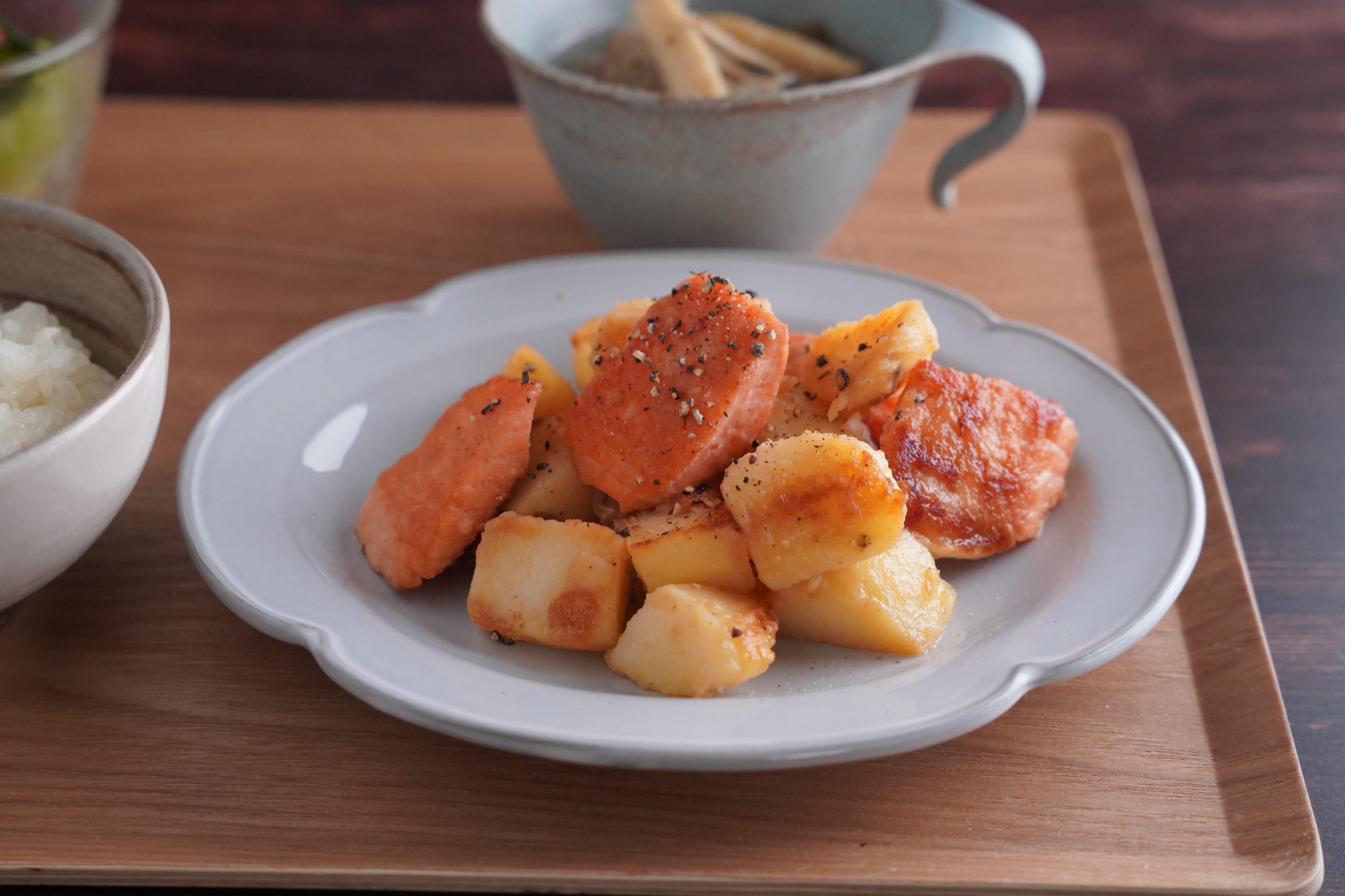 今回は、新じゃがと鮭をバターポン酢で仕上げた炒め物が主役の献立をご紹介しました。